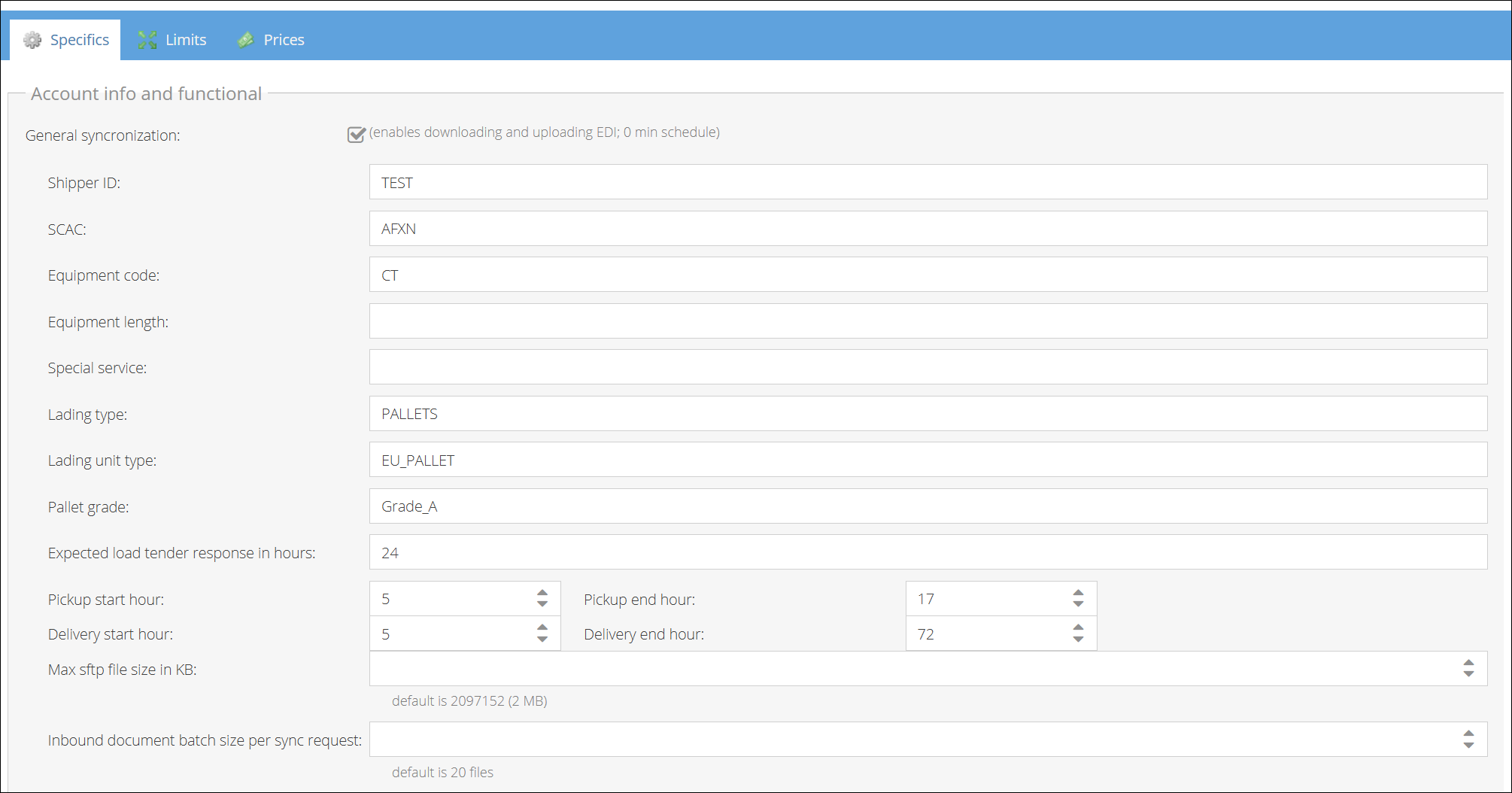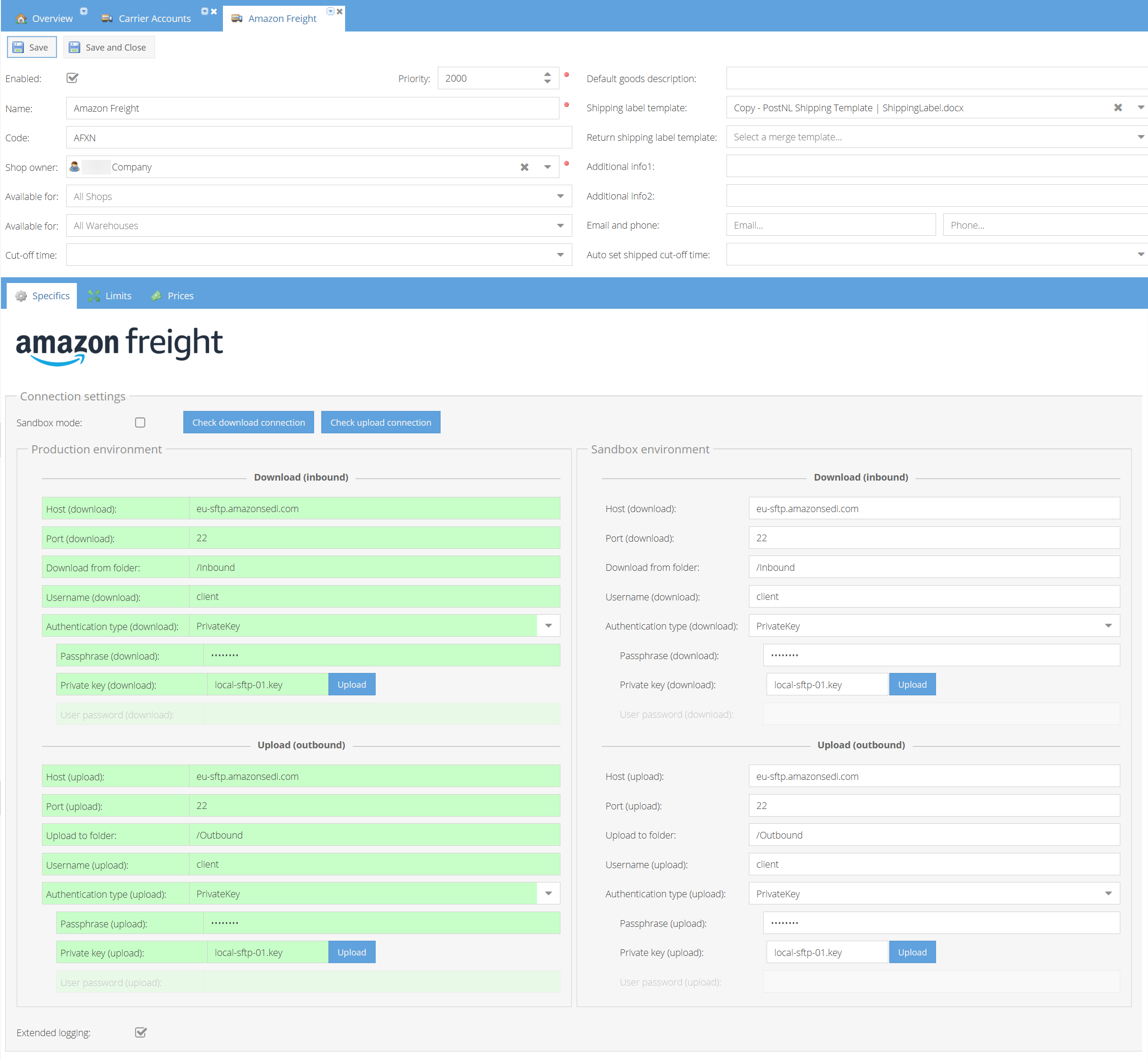 To establish a connection, you must configure both the Download (Inbound) and Upload (Outbound) settings provided by your Amazon Freight representative.
